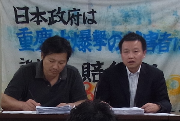 重慶の支援者王永鋼さん(左)、田代博之弁護団長(右)