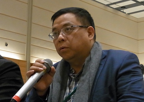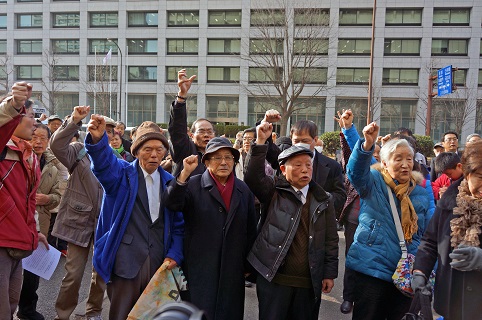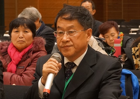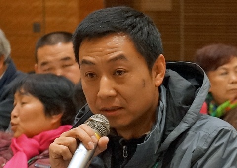 マイクを持って話しているのは重慶の原告粟遠奎さん