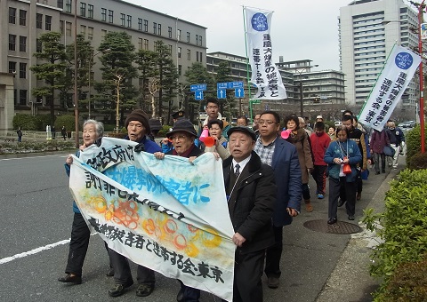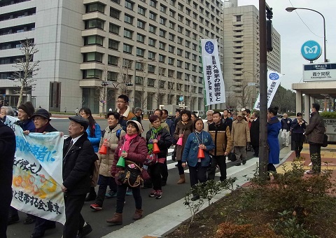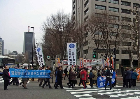 日比谷公園霞門から東京地裁、虎ノ門駅周辺、日比谷公園までの約30分間デモを行いました